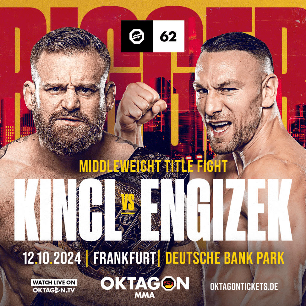 OKTAGON MMA potvrdil další hvězdný zápas na kartě, která slibuje být největším turnajem v celé historii organizace. V říjnu se před více než 55 000 diváky odehraje klíčový souboj o titul šampiona střední váhy, kde Patrik Kincl bude čelit německé MMA superstar, Kerimu Engizekovi.